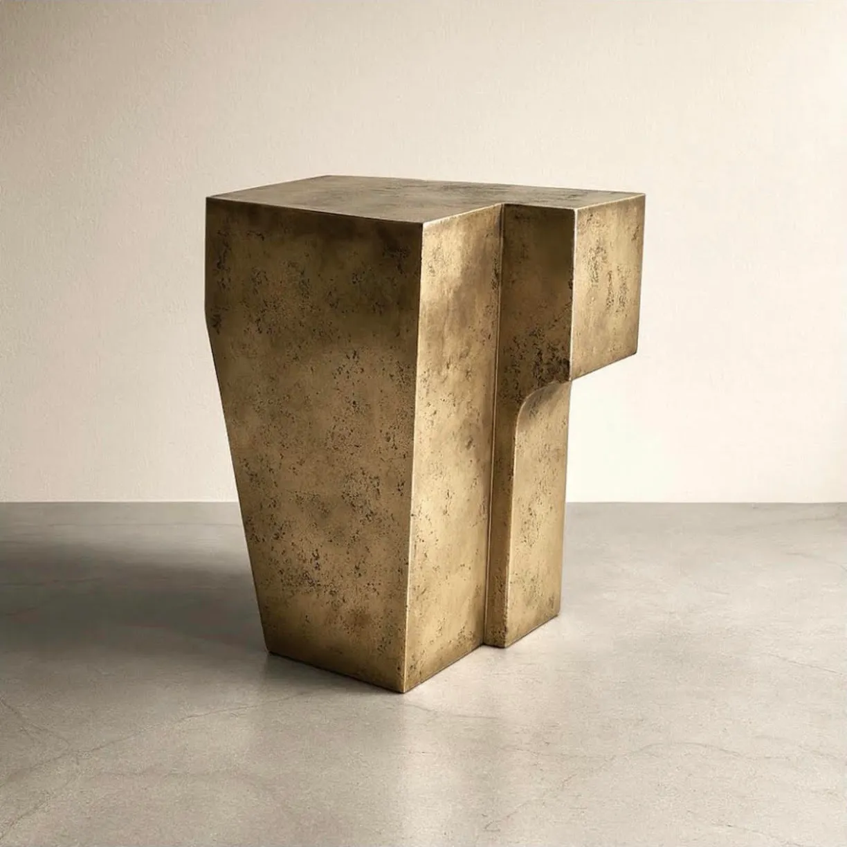 CUT FORMS are side tables as small monuments of positive and negative form. To materialize CUT FORMS, OKHA Creative Director Adam Court coaxes a new core order from a rudimentary rectangular block by carving away in swift precise movements, shapes that when removed reveal a totemic, futuristic and re organized mass.