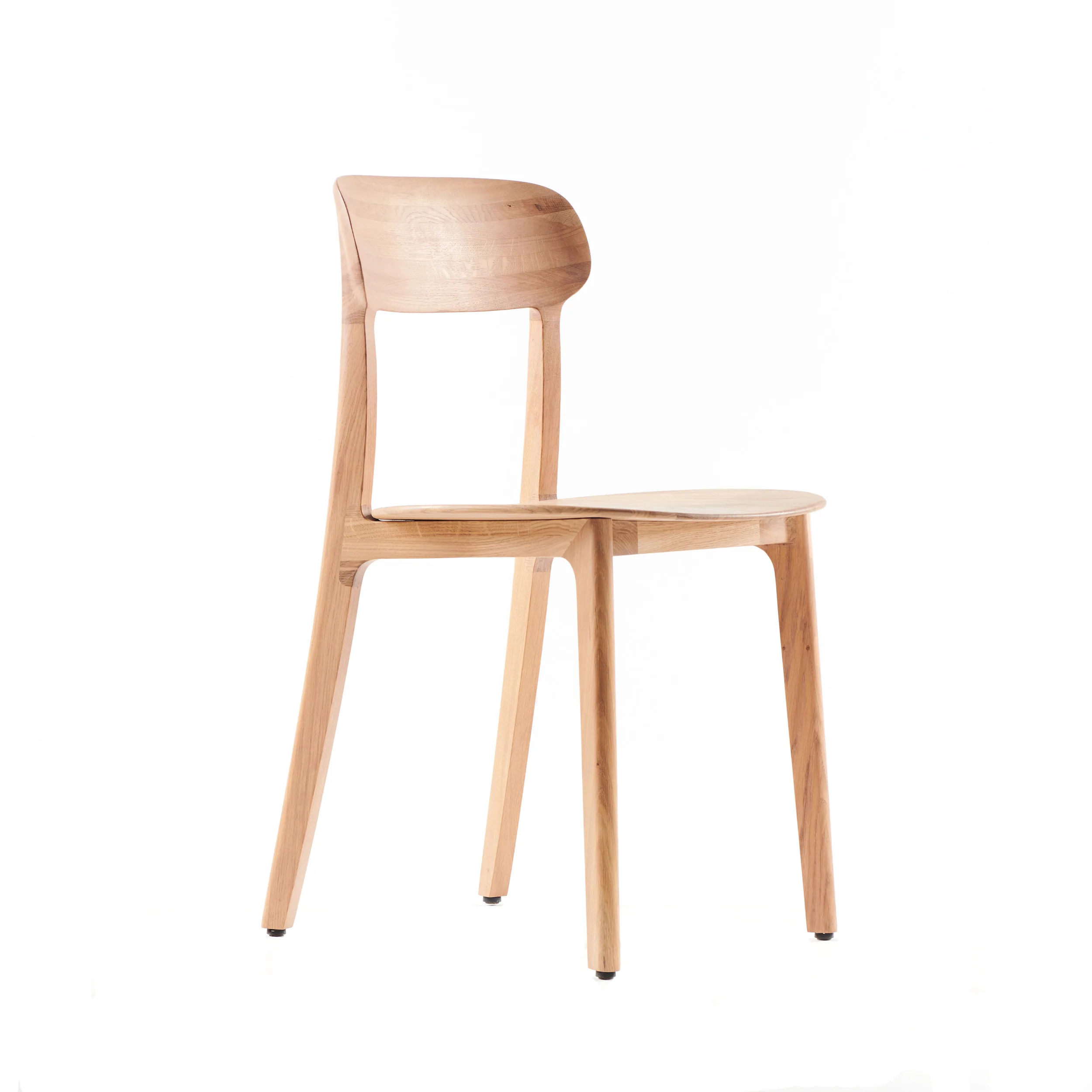 The typology of the Tanka chair is very classic and has been interpreted in many ways in many chairs. What gives Tanka its distinctive character though is the way that the back legs connect to the solid wood backrest, almost as they were melting into each other. The chair has a simple frame, with a subtle curve of the back legs giving it a bit of elegance. It is extremely lightweight for a wooden chair, yet very sturdy. The word tanka means ‘thin’ in Croatian, which seemed to be the right name for a chair with such a light and playful appearance. The Tanka chair is available in 6 different types of wood (oak, walnut, maple, elm, cherry, and pear), with various natural finishes (oils and soaps) upholstered with a range of leathers or fabrics.