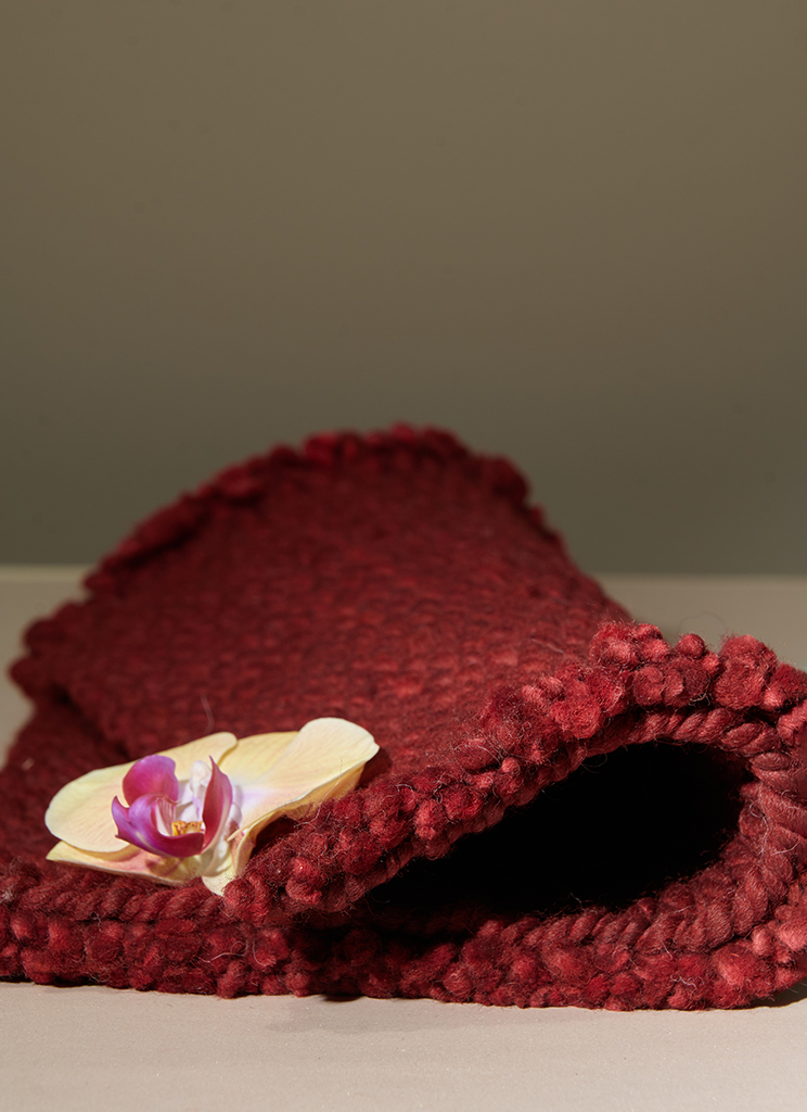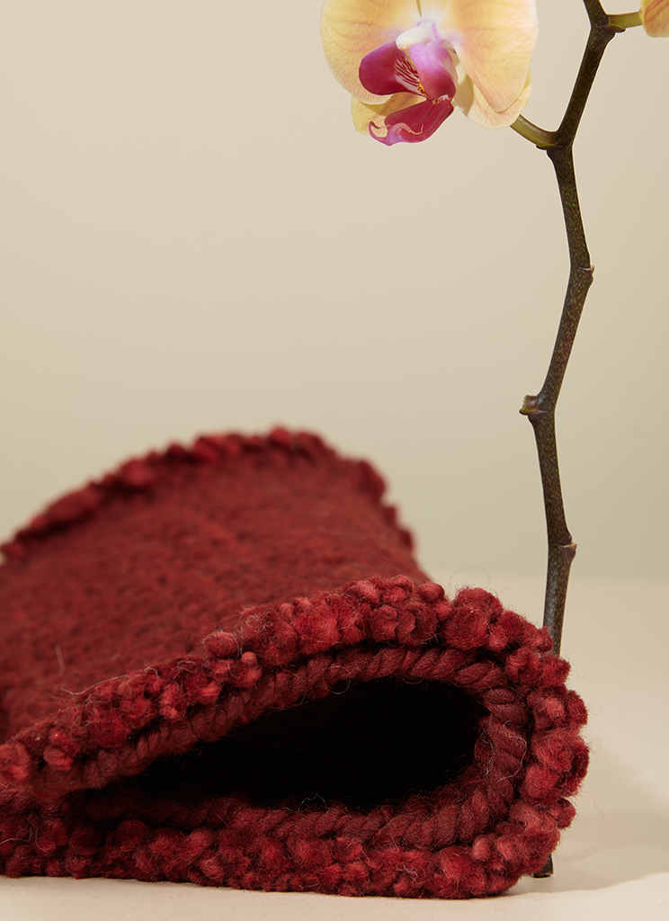 Borgoña is hand-dyed, developed through a careful and patient process until the right balance was achieved. It is deep, muted and full of character: not too bright or loud. Borgoña can be ordered across both of our sheep wool collections, Carded and Criolla, each offering a distinct expression.