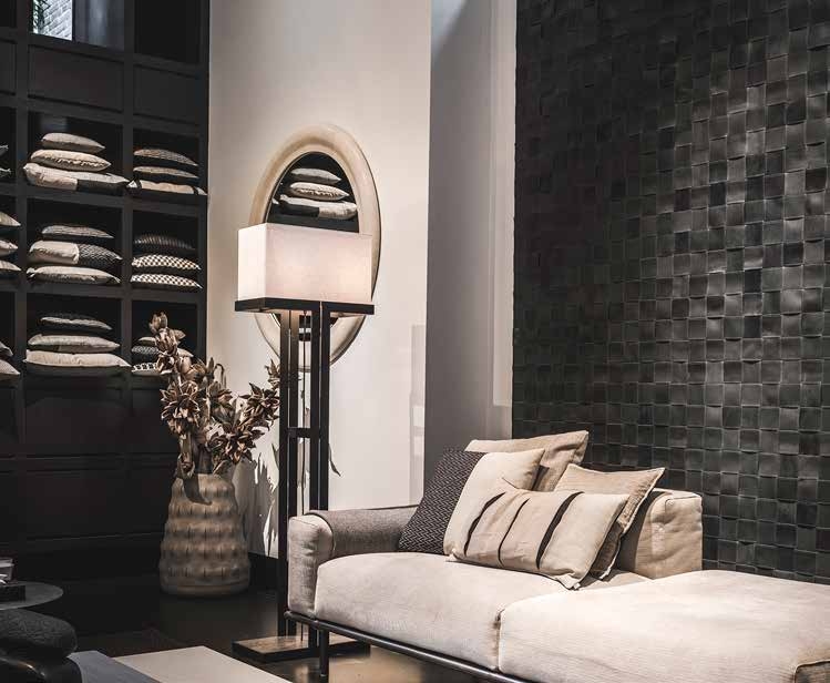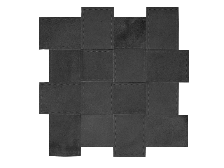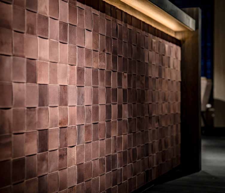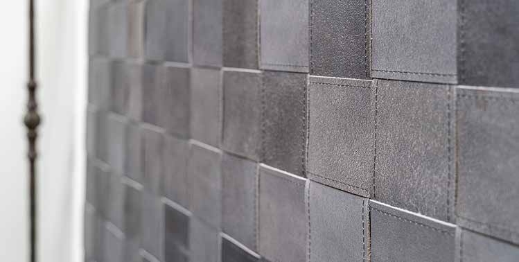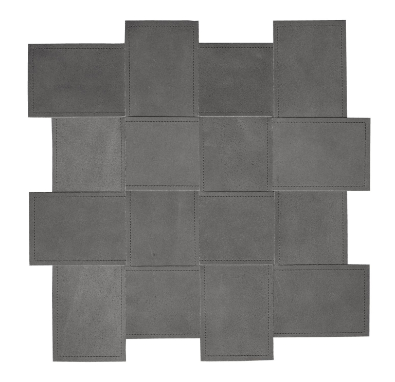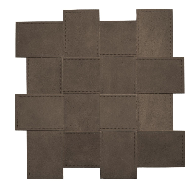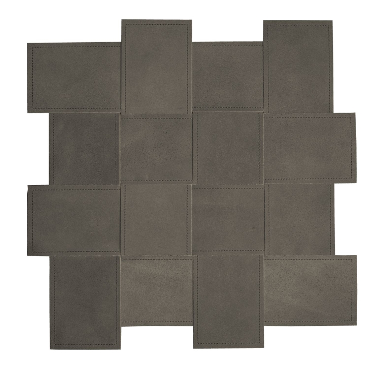 The base consists of strips of leather, cut from residual material, provided with a decorative stitching seam and processed into tiles. These can be invisibly interconnected. This creates the effect of endless lenghts. Something you normally cannot achieve due to the limitation of a skin. Braid is suitable as a wall covering, both on straight and curved walls.