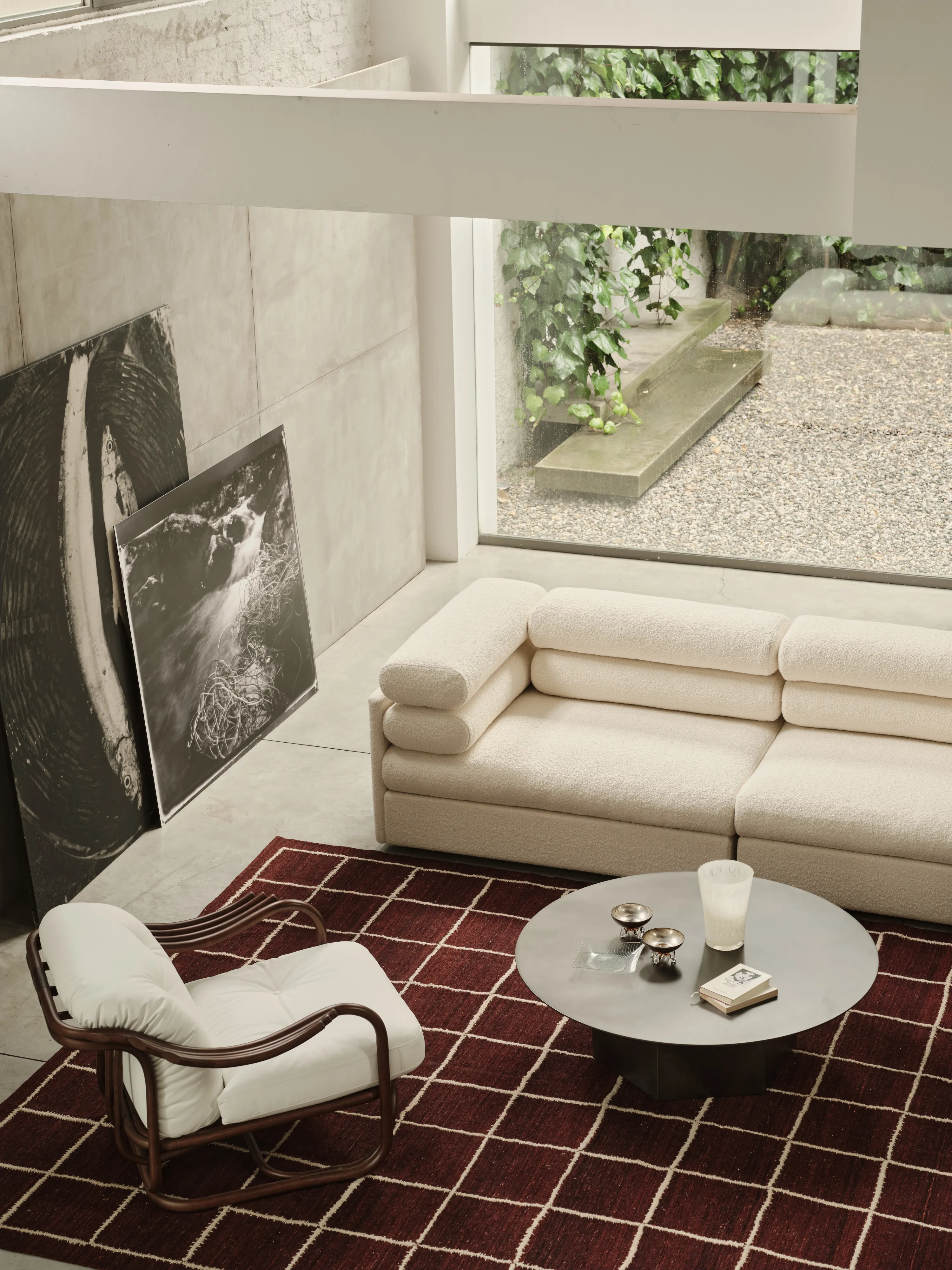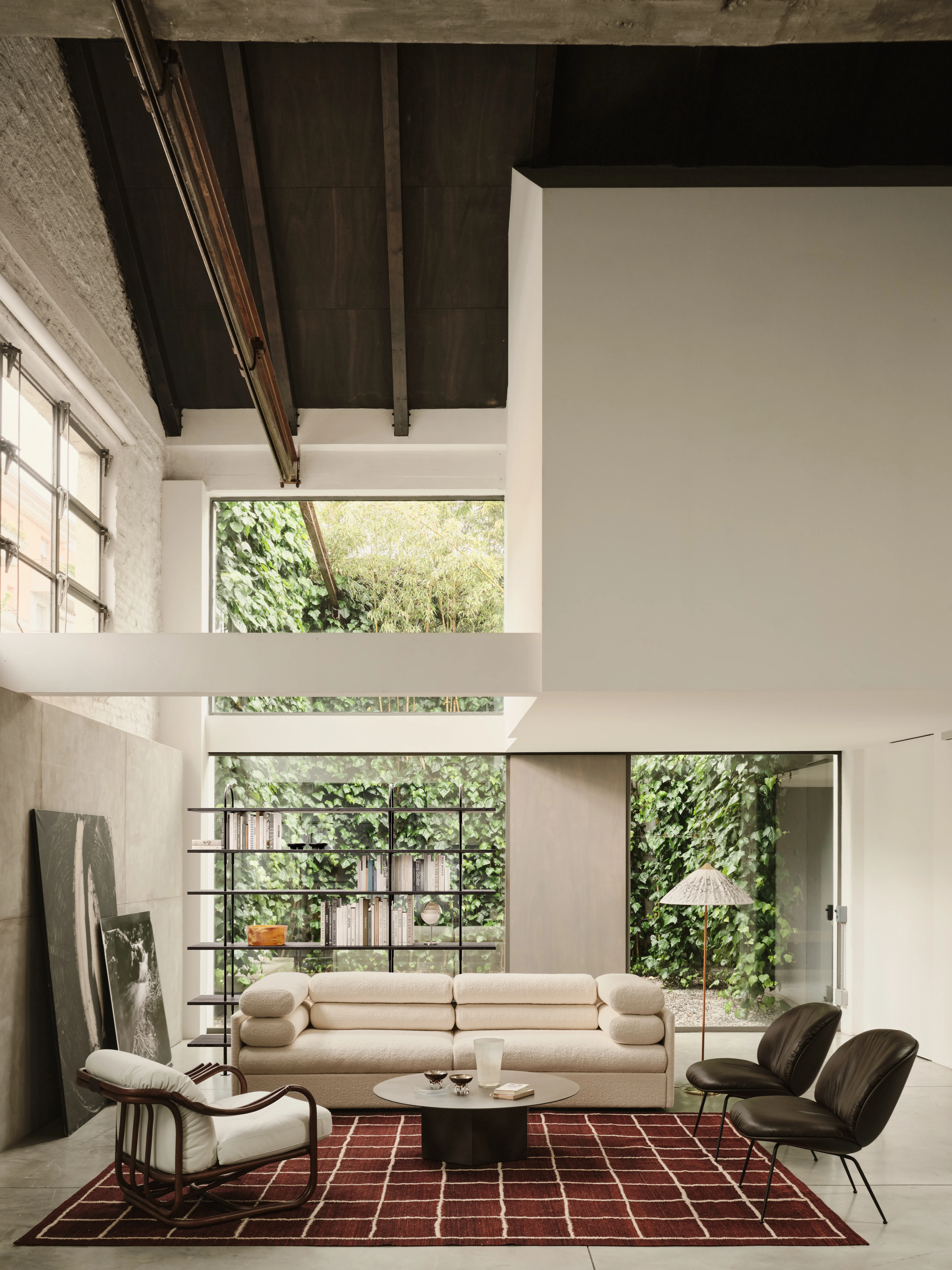 The Elogio Sofa, an iconic 1974 design by Tobia and Afra Scarpa, blends inviting softness with architectural structure. Evolving from the Erasmo, its modular approach allows multiple configurations. Revisited with GUBI, this edition enhances comfort and fineness.