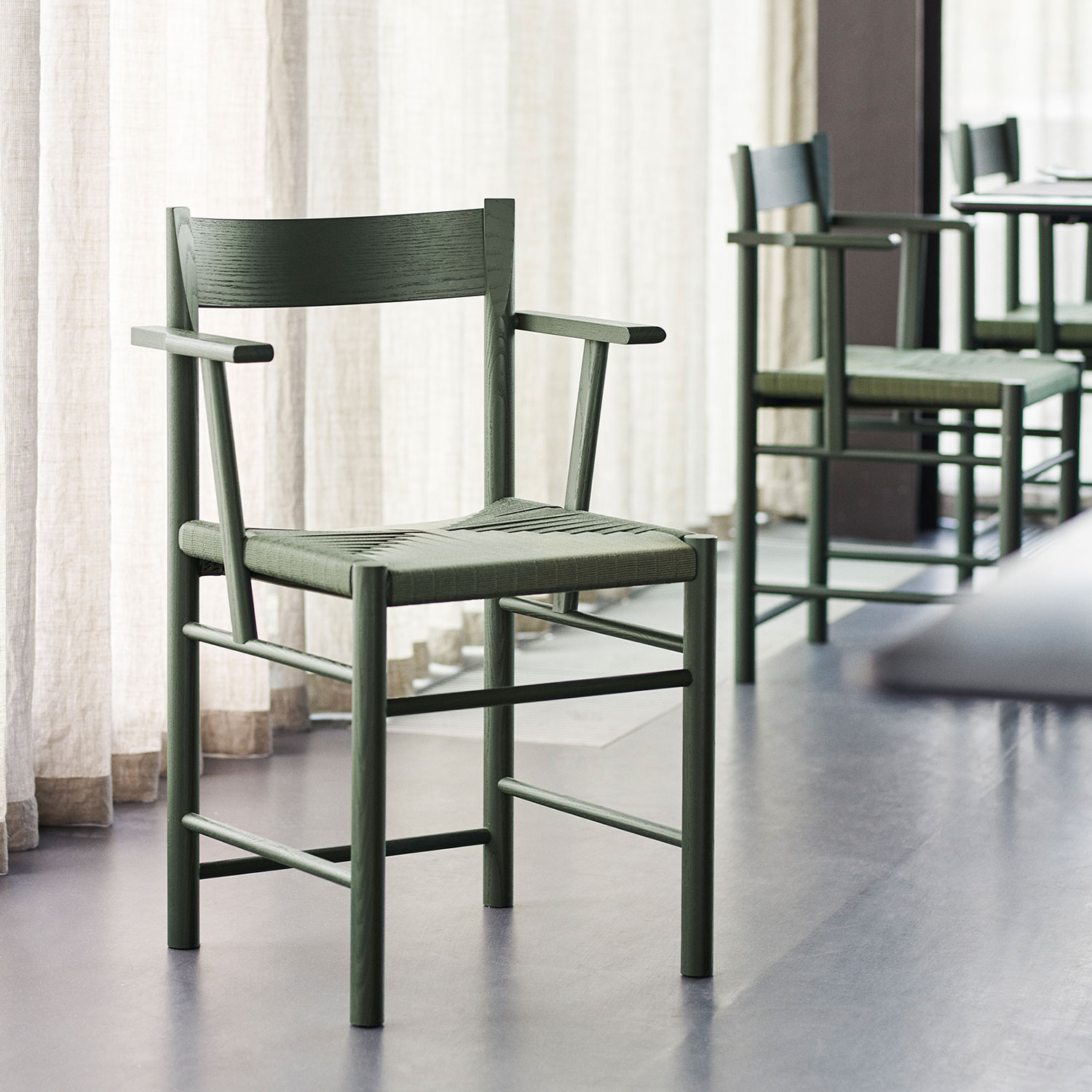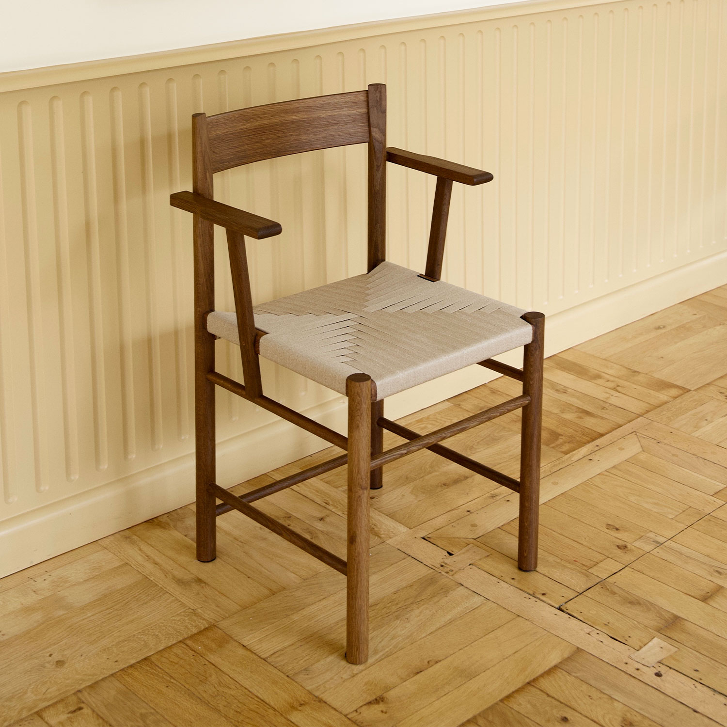The F Chair is a contemporary shaker chair based on the virtues of traditional craft. It carries on the folksy simplicity and honesty of the archetypical shaker chair, but with a modern comfort and a clean-cut, geometricaland minimalistic appearance.