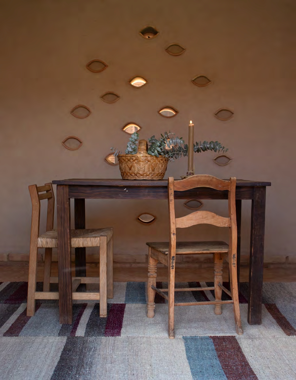 Flat Weave rugs to create a rich texture. The irregularity of the handspun yarn and the exposed cotton warp add depth and texture to the surface of the rug. The interaction between the color of the wool and the color of the warp can add more warmth or coolness to the rug.