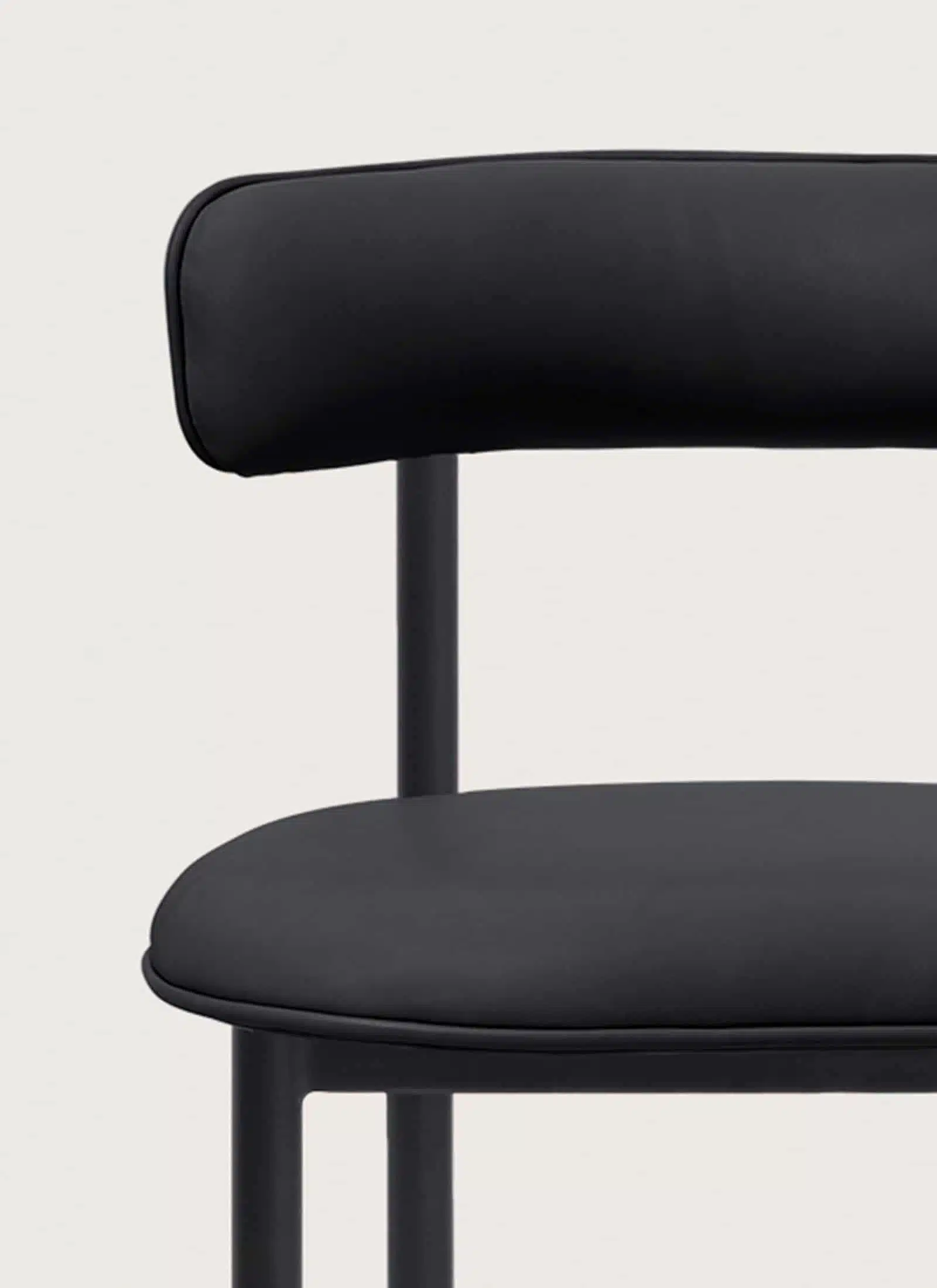 Font stool with matte black frame is designed by David Thulstrup. The design language is neutral enough for it to be placed into various environments and contexts, without taking all the attention.