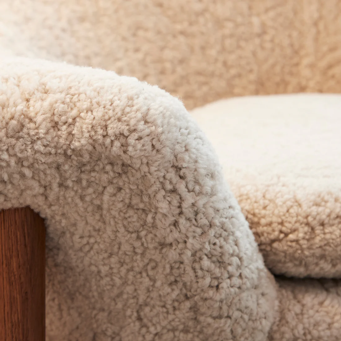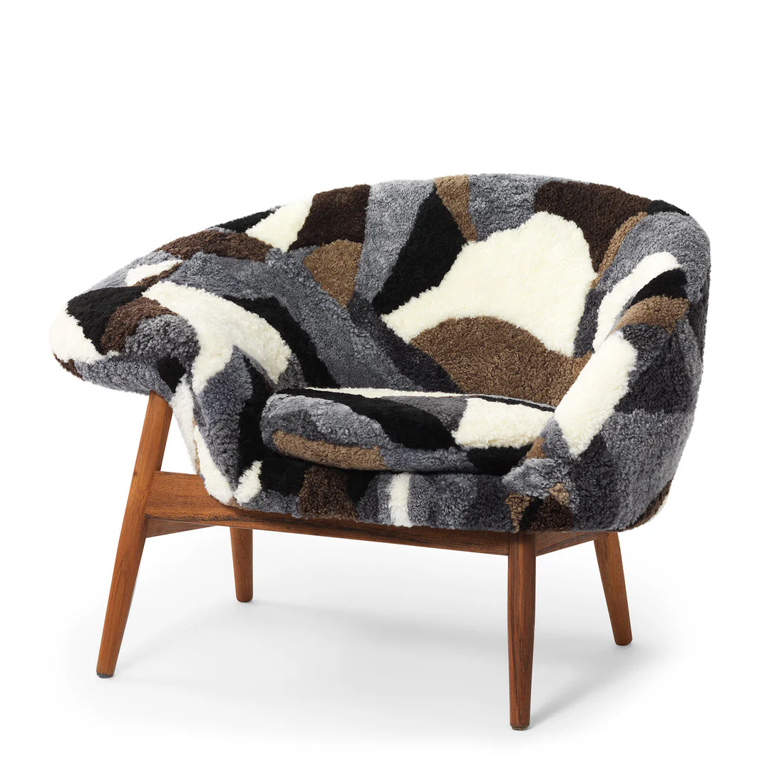Unique asymmetrical armchair with soft sheepskin. The Fried Egg armchair was designed by the renowned Danish architect Hans Olsen in the 50s and is a unique design chair with both personality and whimsy, which is emphasized in the particularly comfortable sheepskin variant, which is now available for design lovers. Due to its characteristic shape, the spacious as well as graceful chair has been nicknamed the Mirror Lay, because this is exactly what the chair reminds of when the design is viewed from above.