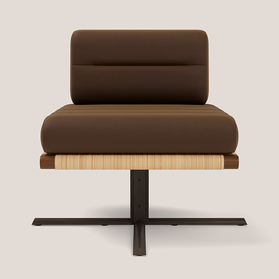 The central promenade of La Rambla in Barcelona encourages you to slow down and watch the world go by. A canopy of trees shades the benches that line the iconic street. Yabu Pushelberg’s La Rambla lounge chair echoes the invitation to slow down and savour la alégria de vivre.