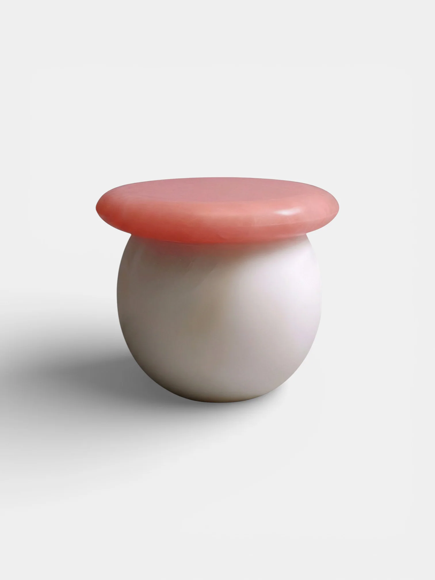 The “Choux à la Crème” side table elevates the timeless elegance of onyx in a minimalist and refined creation. Crafted from a solid white onyx base, sculpted from a single block, it exudes a sense of purity and softness. Its round pink onyx top, delicately polished, completes the composition with a subtle touch of color, evoking a sense of indulgence and harmony.