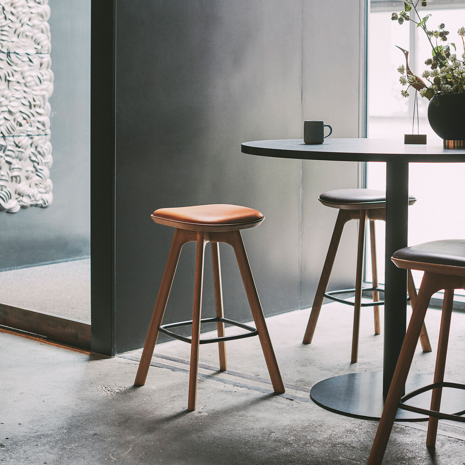 With its slim silhouette and distinct personality, the Pauline Bar Stool is a sophisticated furniture design, reflecting the spirit of the mid-century Danish Modern movement and uniting craft, core values and design.