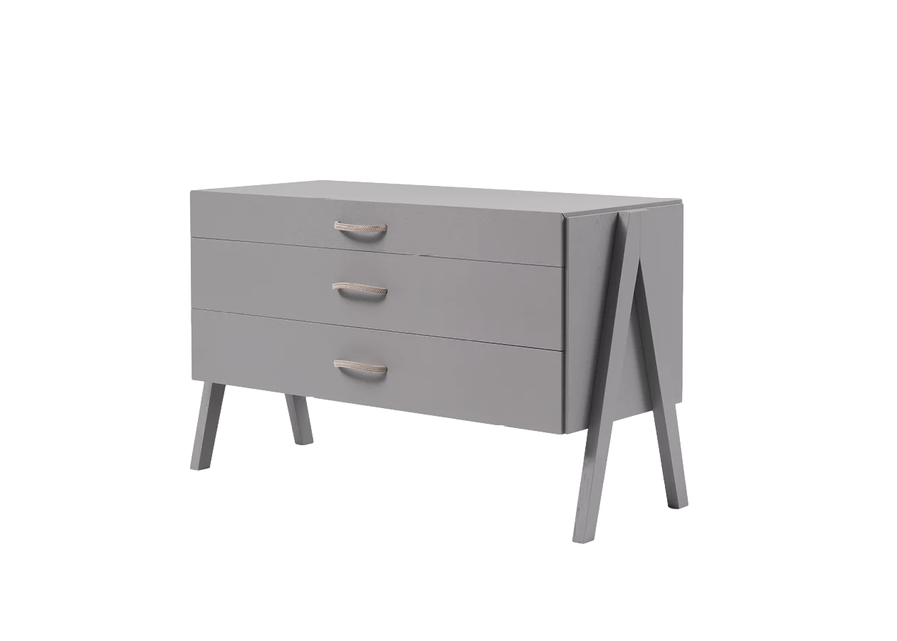 Elegant and essential, the Pier 63 chest of drawers harmoniously reinterprets the formal language of the Pier collection. Made of ash wood, it stands out for its lightweight structure, defined by the iconic inverted “V” base. The three spacious drawers offer ample storage and functionality, while the woven textile rope handles add a touch of refined materiality, enhancing the perfect balance between aesthetics and practicality.