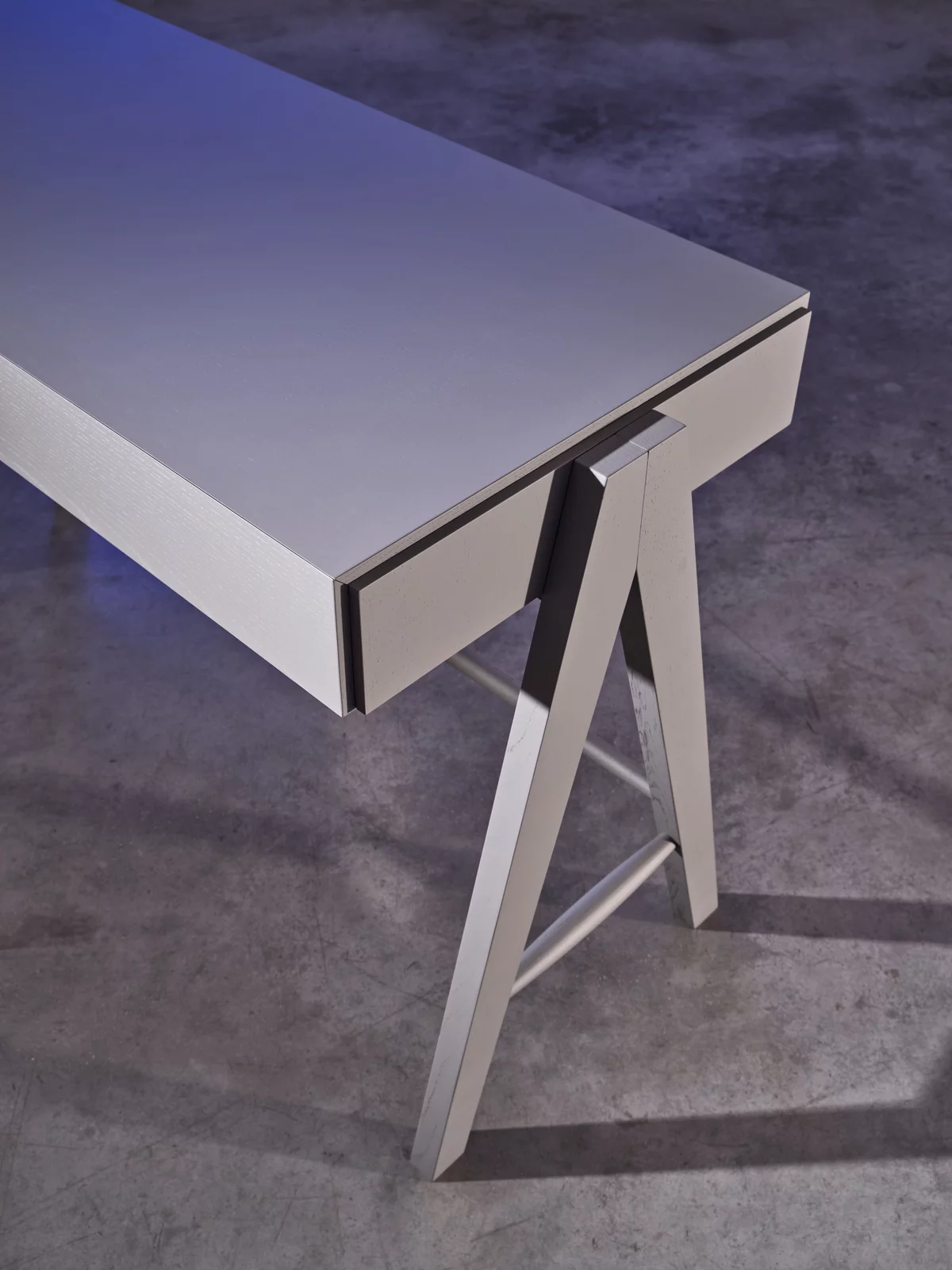 Essential and refined, the Pier 60 writing desk combines clean lines with precious details. Made of ash wood, it stands out for its lightweight structure, inspired by the characteristic inverted “V” shape of the Pier collection. The drawer, embellished with a woven textile rope handle, adds a touch of tactile elegance, creating a harmonious balance between functionality and sophistication.