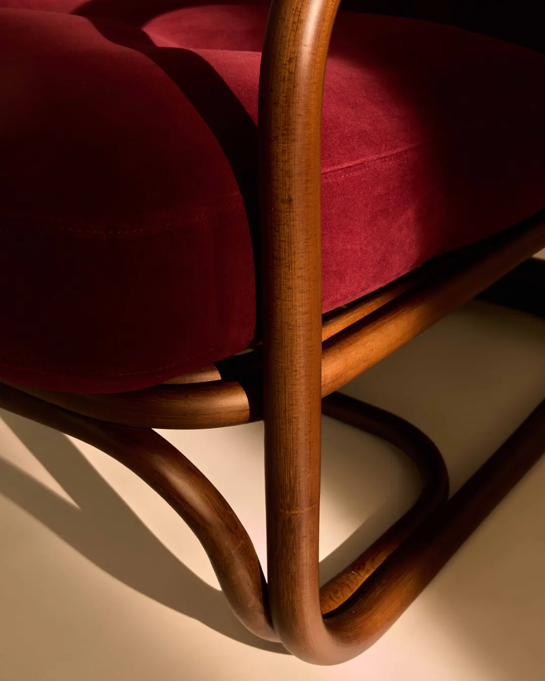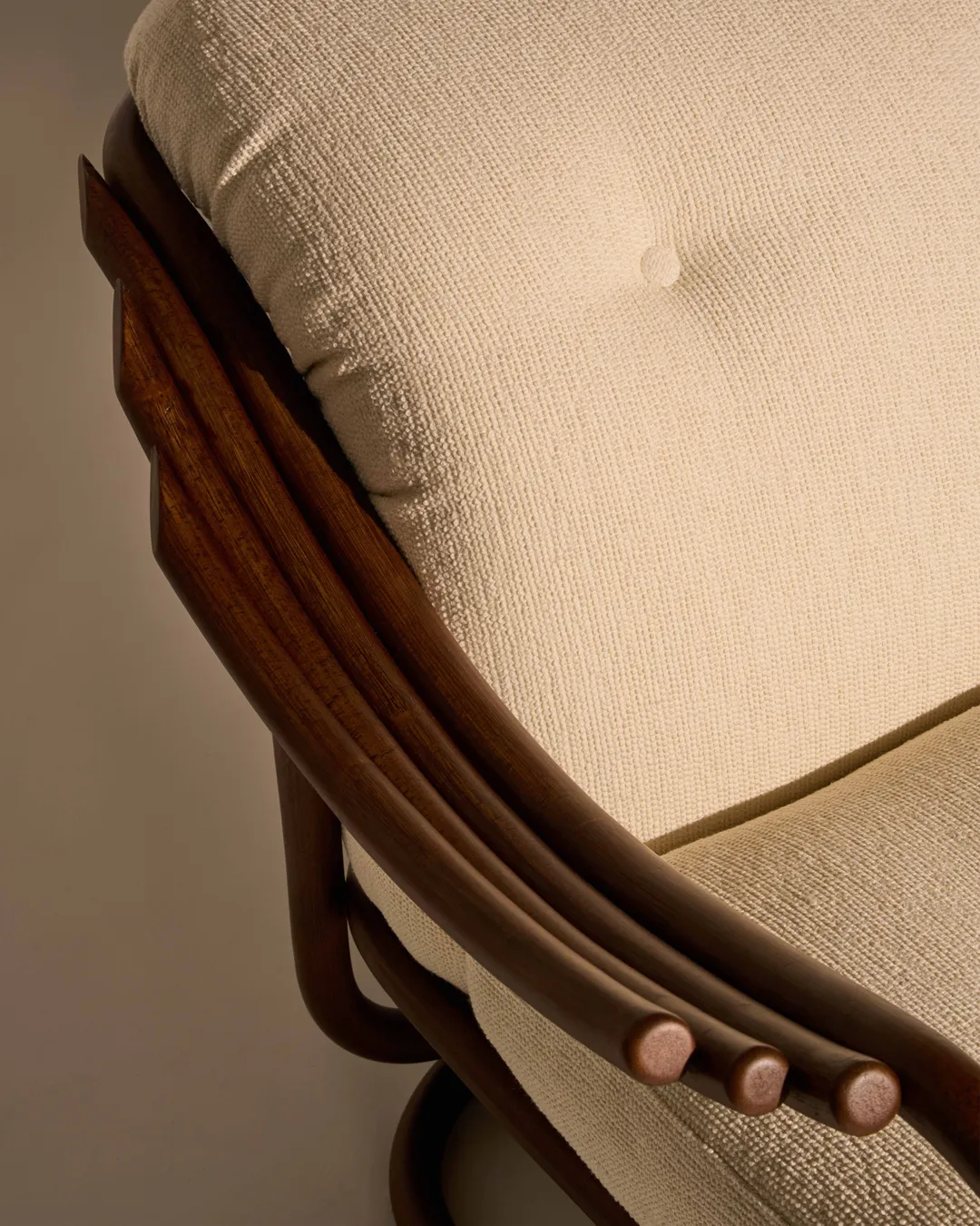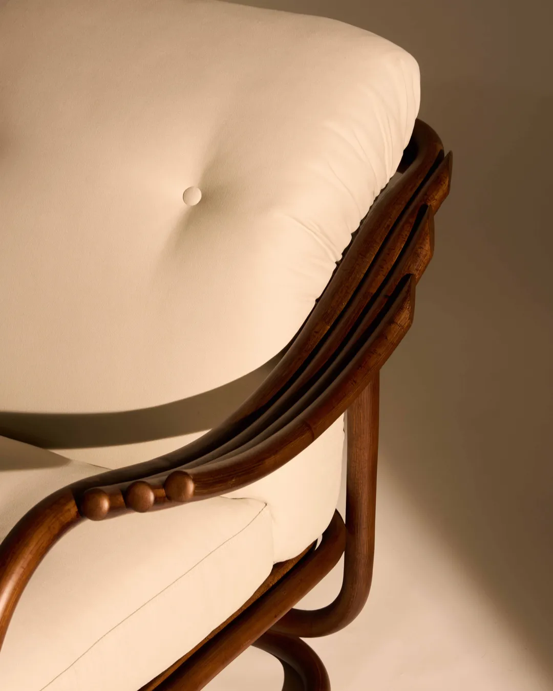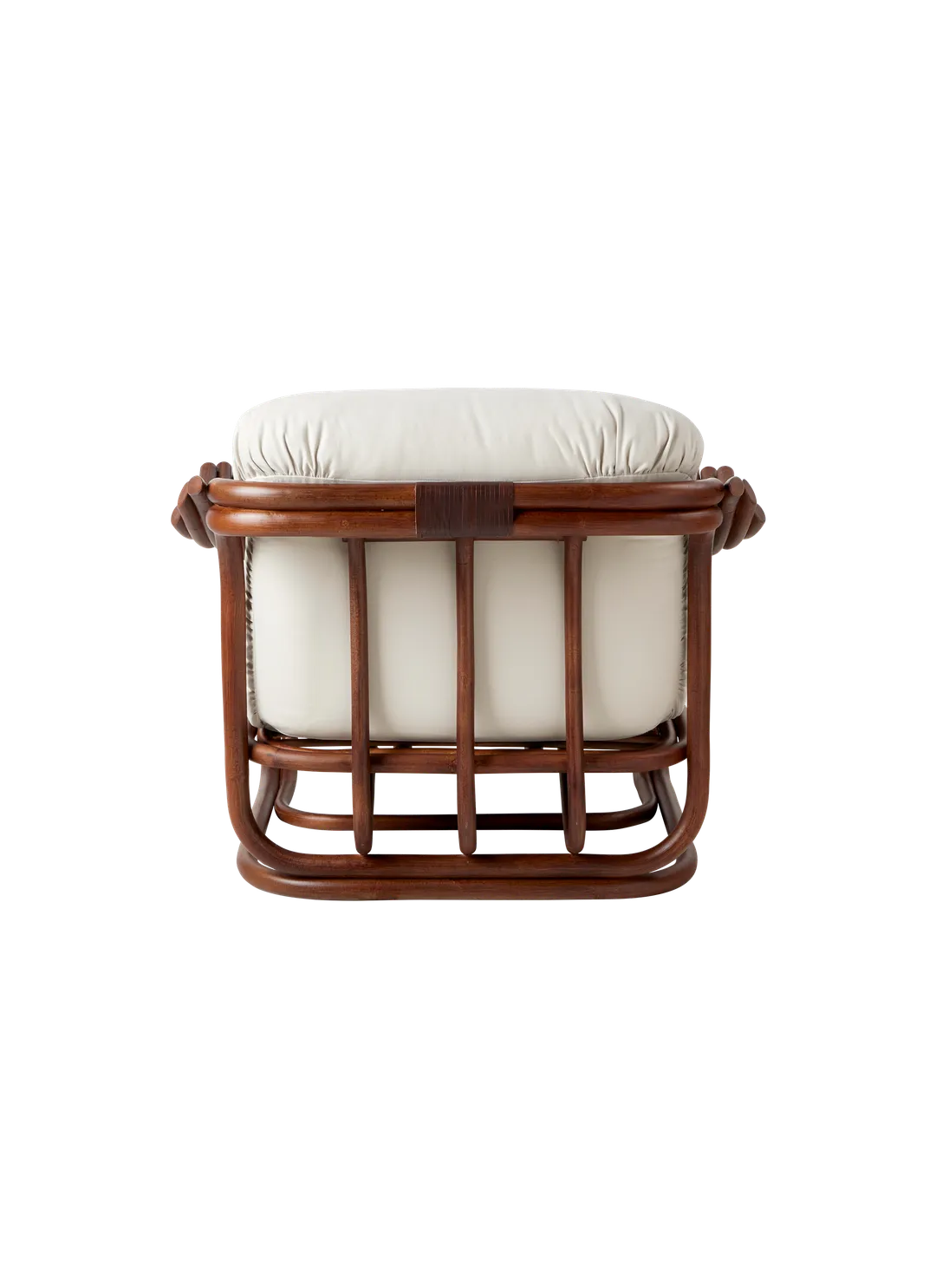 Seamlessly merging the inherent beauty and charm of natural rattan with meticulous ergonomic precision, the Poltrona Tria Lounge Chair embodies both artistry and function. Constructed almost solely from steam-bent rattan canes, curved and fixed into place by hand, it features a distinctive set of gracefully contoured armrests, creating a visually striking yet supremely comfortable seat. Enhanced by two deep-set cushions, the Poltrona Tria delivers an exceptional lounging experience in any indoor setting - while the natural material expressions bring a welcome touch of the outdoors into the home.