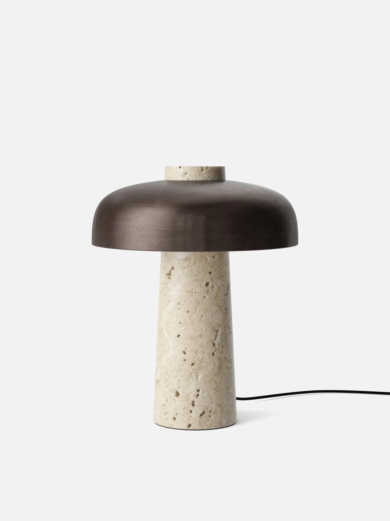 Audo presents Reverse Lamp, a new lighting solution that underpins the ever-present beauty of natural materials. In his search for simple and clever solutions in any given space, Danish designer Aleksandar Lazic looked to Italian marble tables from the 1970s when creating the Reverse Lamp. Inspired by the play on structure created by geometric constraints, the conical travertine base and curved, bronzed aluminum shade define the lamp’s perfectly balanced expression.