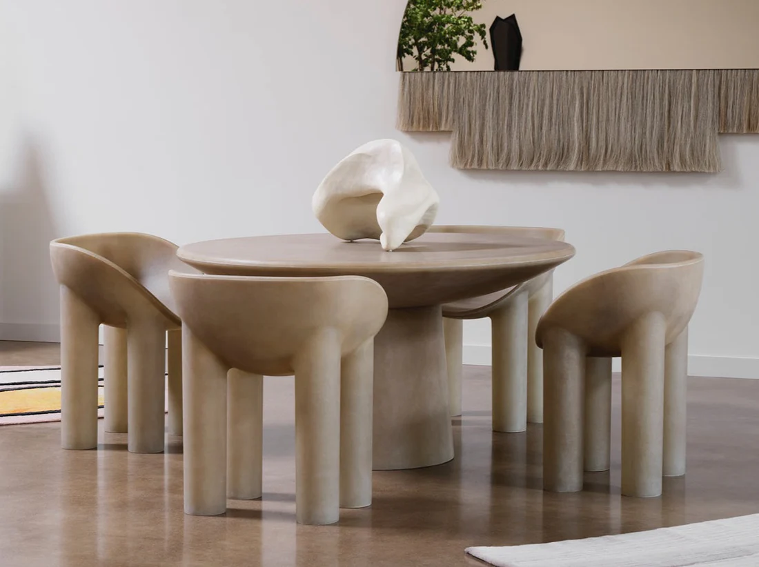 A taller iteration of the roly-poly chair, this scoop-seated chair with four plump legs is cast as a single piece of fiberglass.