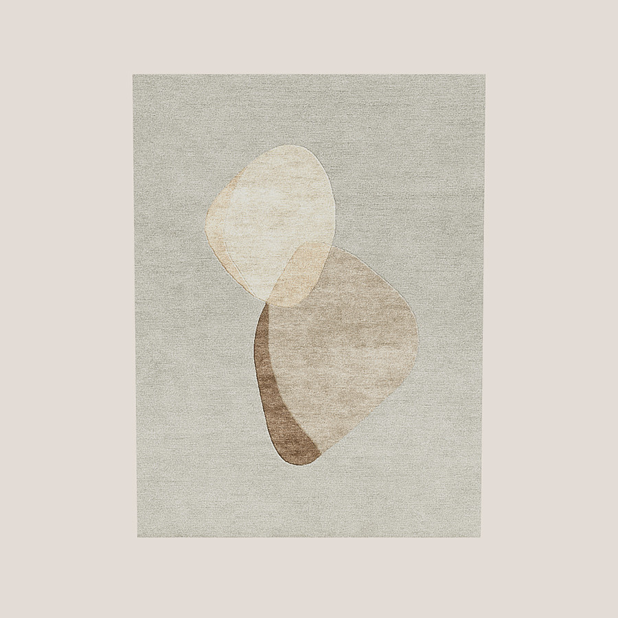 On the most charming street in Búzios, Rua das Pedras traces the ocean peninsula adjoining cobbled city streets with azure waters and white sand. Printing Brazilian style, Simone Coste’s design builds forms from the silhouettes of the shoreline, blending man-made and natural formations. The rug's pallete reflects the tones of the beach’s tanned bodies and their nuances.