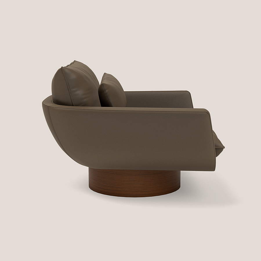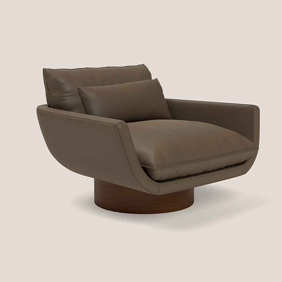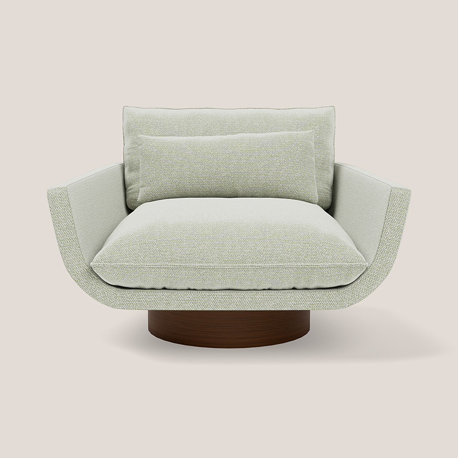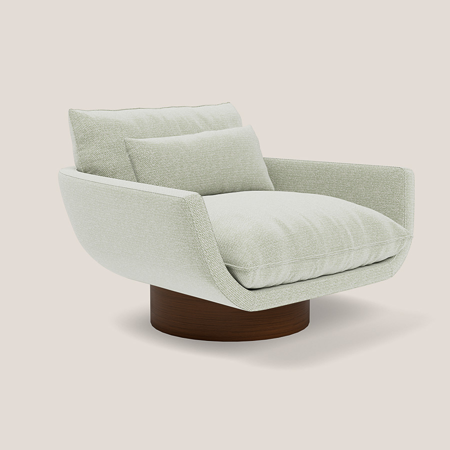 Combinations of fabric or leather with a swivel walnut or oak veneer base.