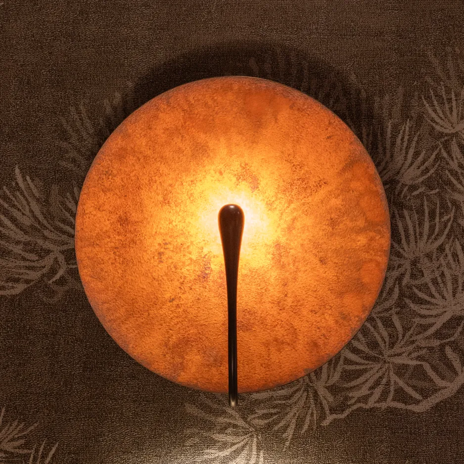 Inspired by the beautiful textures of nature, a mixed rust patina is applied on a hand-spun brass plate to create this unique finish. Please note that each piece is individually handmade, therefore unique in its own way. Price: $3024.