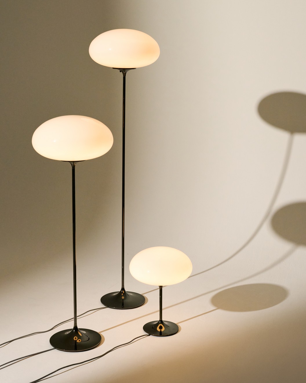 The Stemlite (1962) was the first ‘total look’ lamp, a pioneering new typology conceived by American Designer Bill Curry, which replaced the traditional base-plus-shade form with a single self-contained unit comprising interchangeable modules.