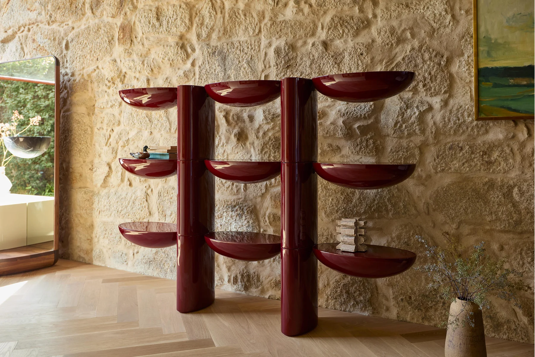 Tai Hen artfully frames spaces and objects with its bold lacquer form. A functional piece with vivid colour and a reflective surface. Available in 2, 3 and 4 tiers.