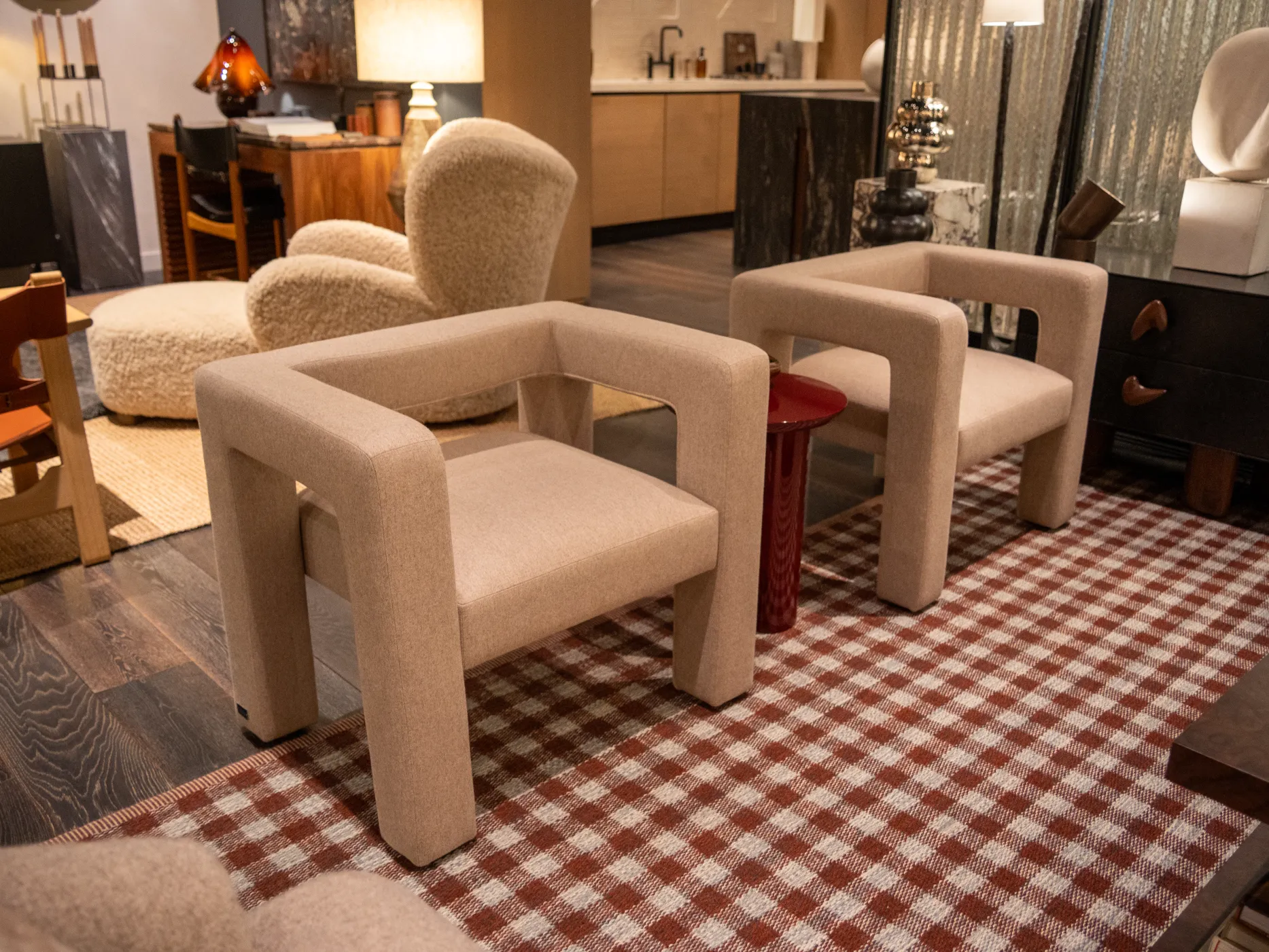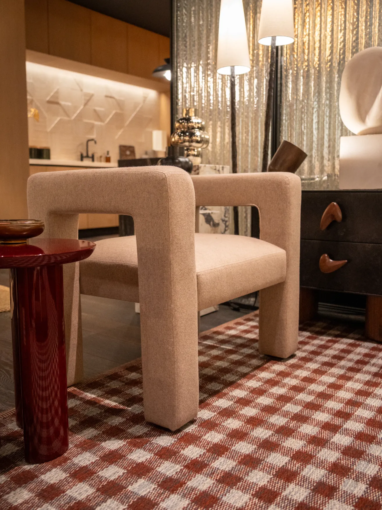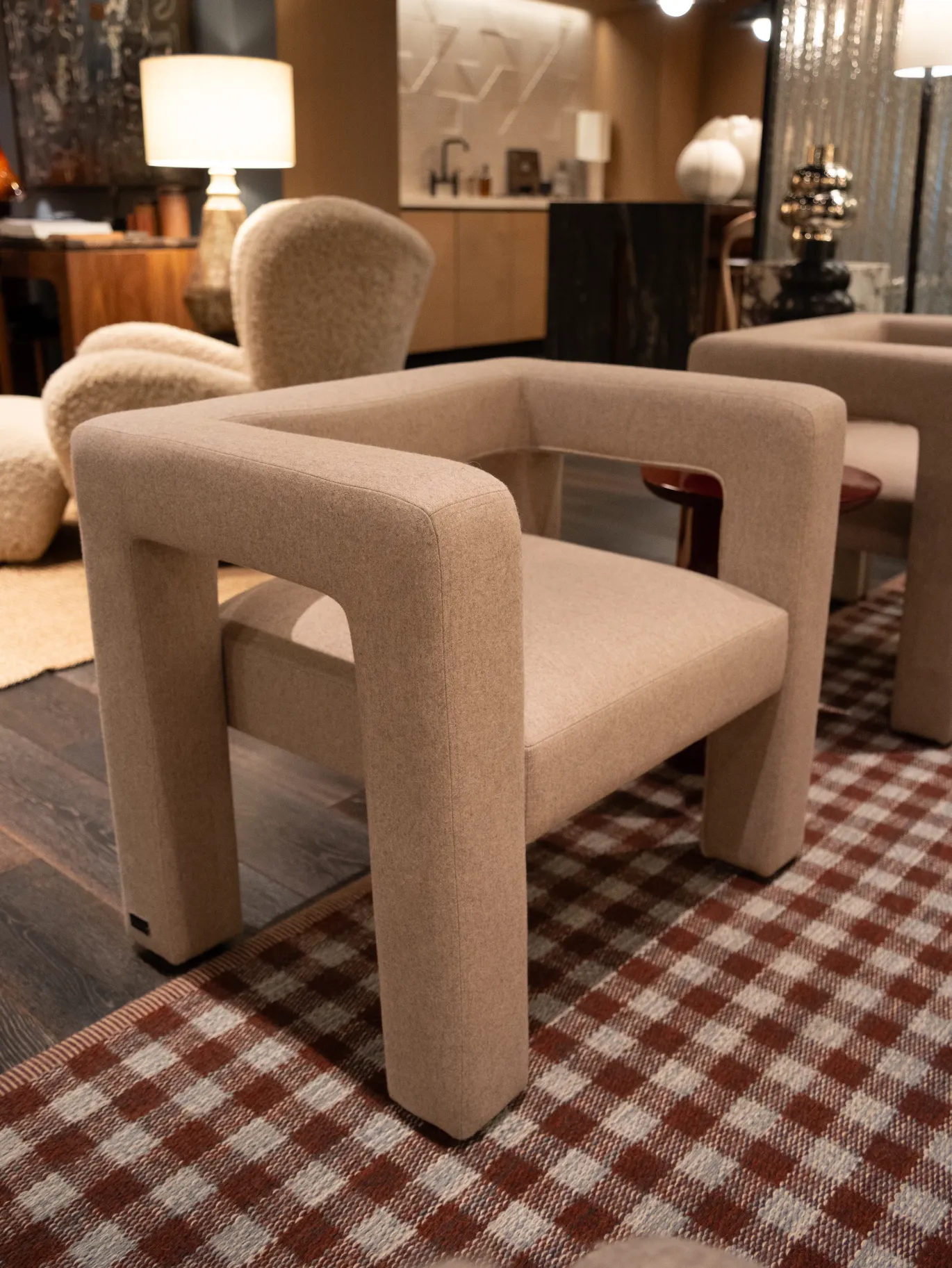 TOPTUN is created with the idea of “soft geometry” — a primitive shape with strongly eminent outlines. TOPTUN’s chunky legs make it a living creature, centerpiece of any interior. Price: $2500.