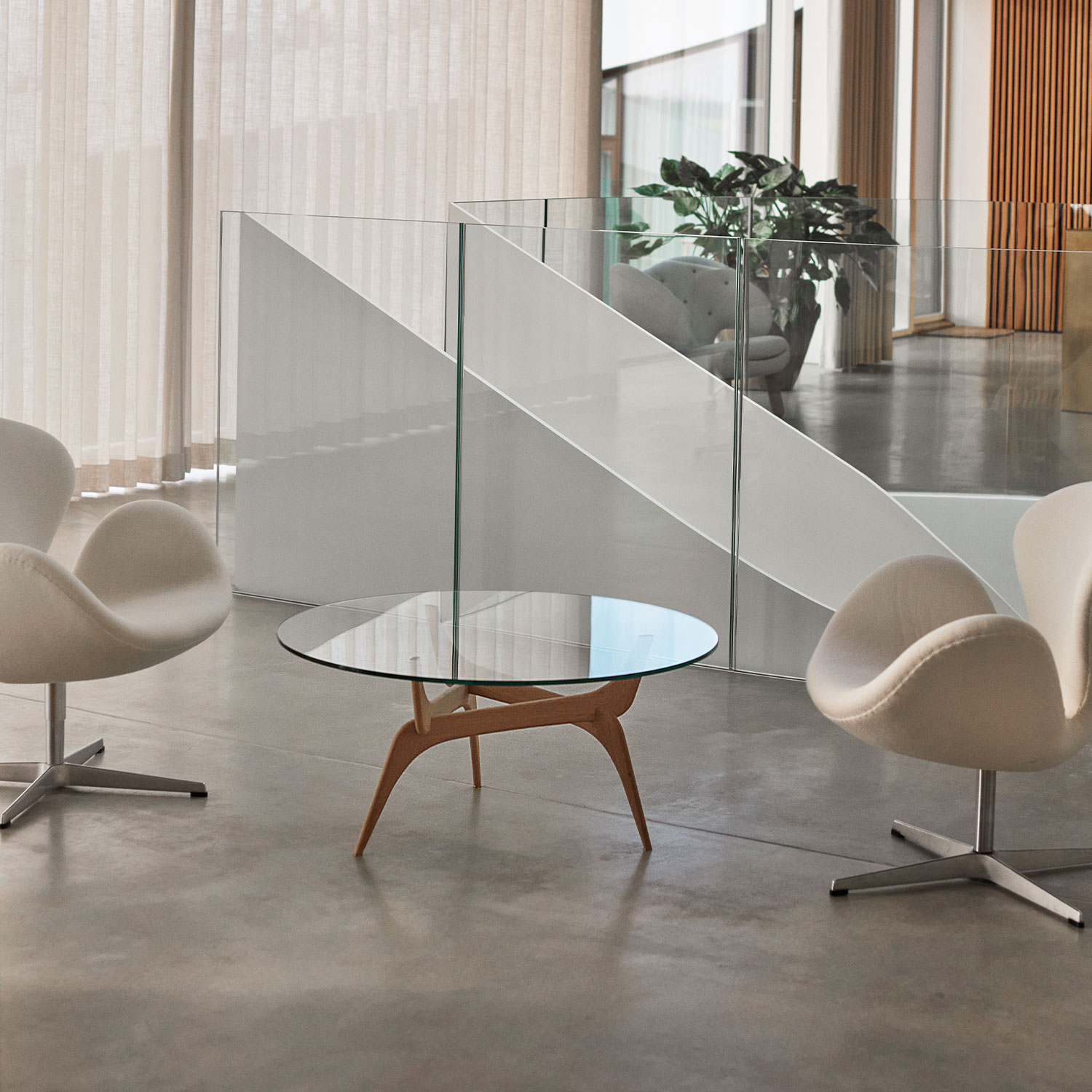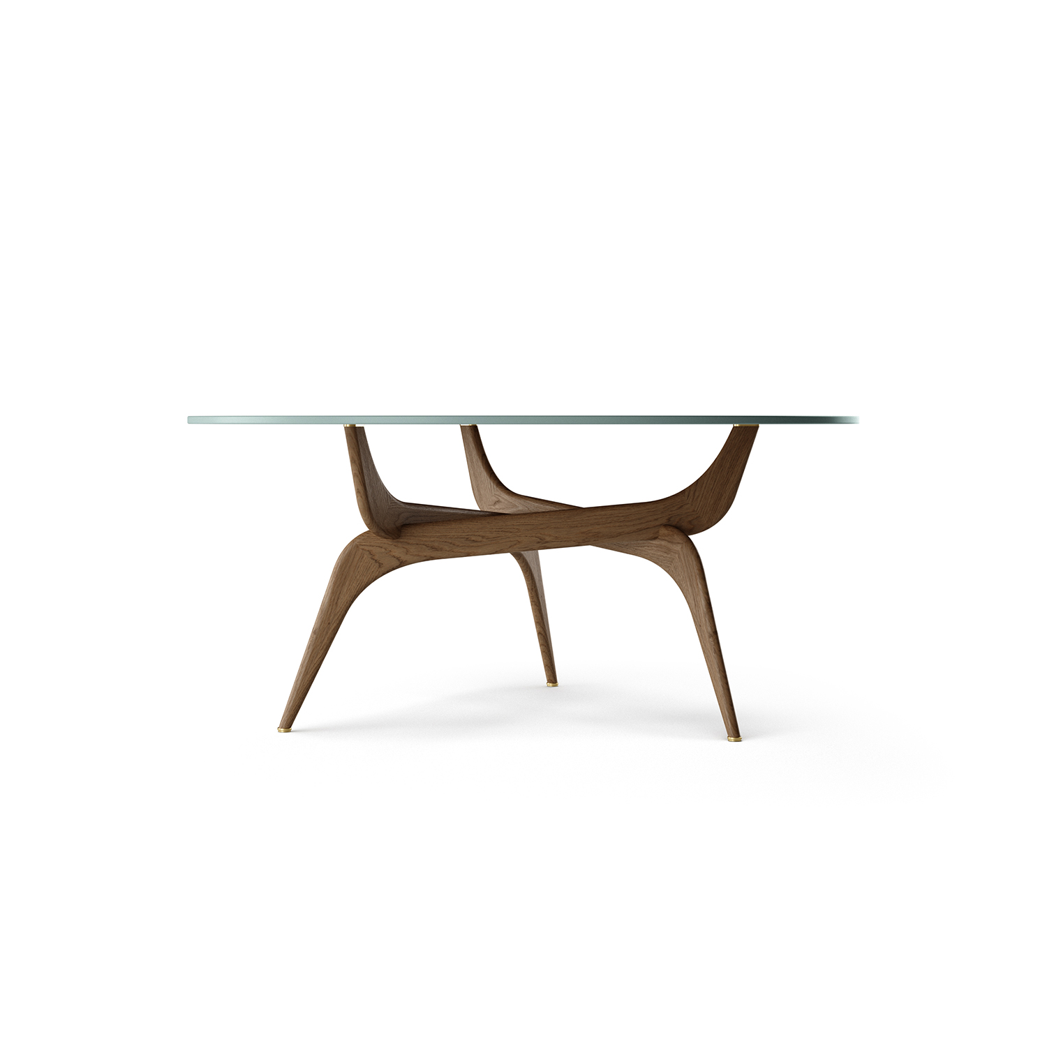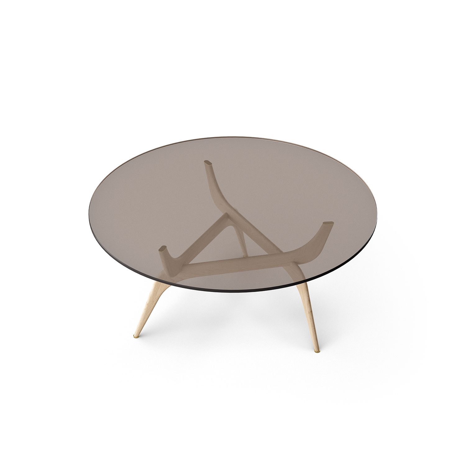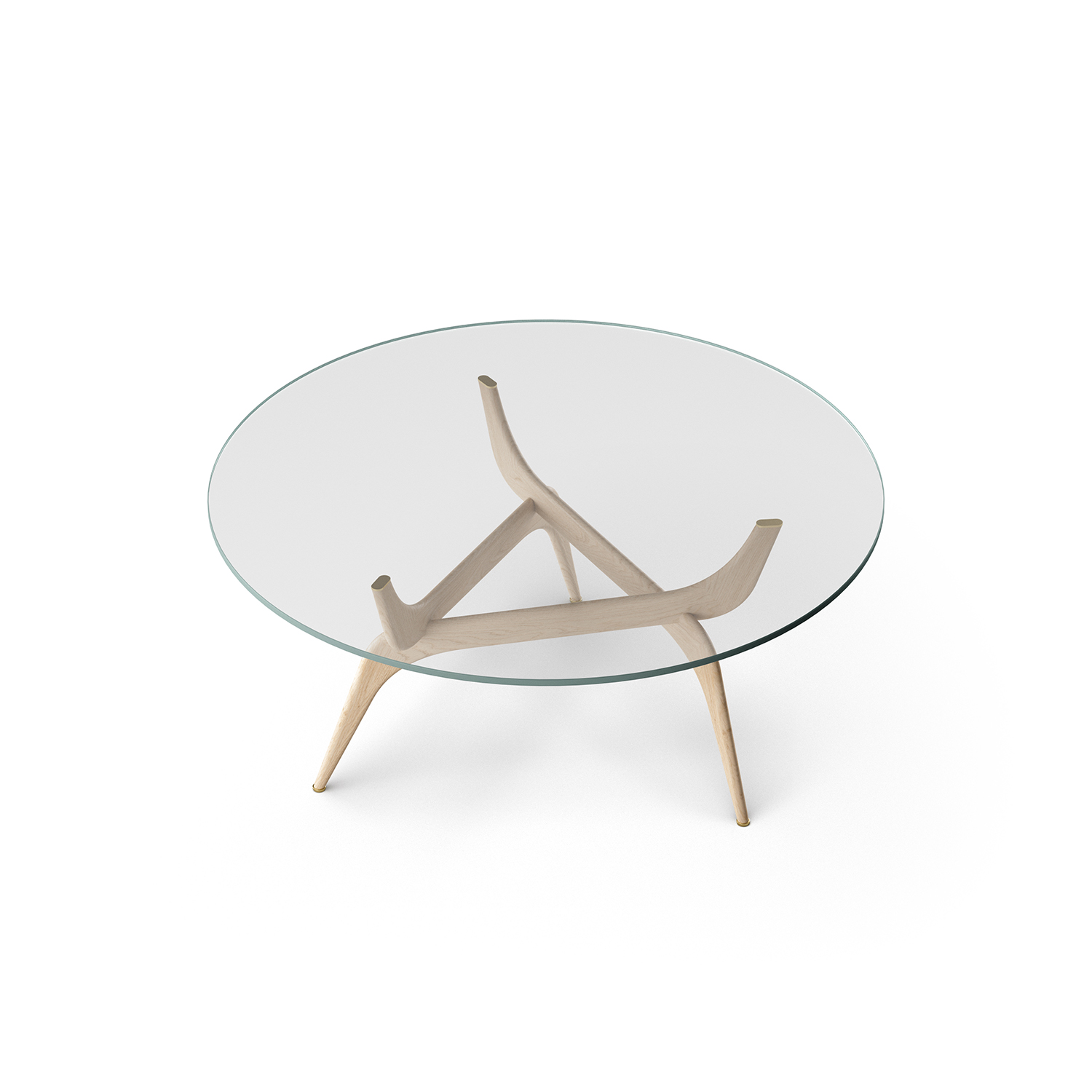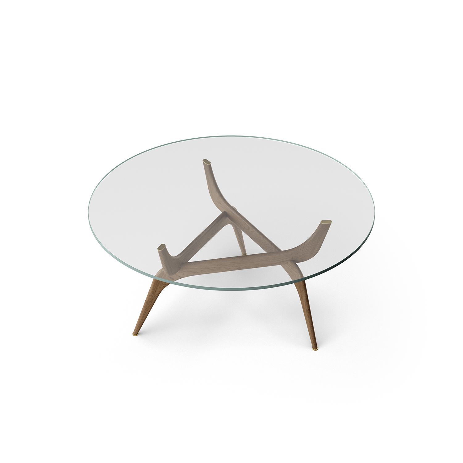 In 1958, Danish architect Hans Bølling sketched a table that blends playful construction with sculptural elegance. Today, Brdr. Krüger brings this vision to life in the TRIIIO Coffee Table, where a twisted oak base—reminiscent of growing tree branches— meets a floating glass top, creating a poetic balance between function and form.
